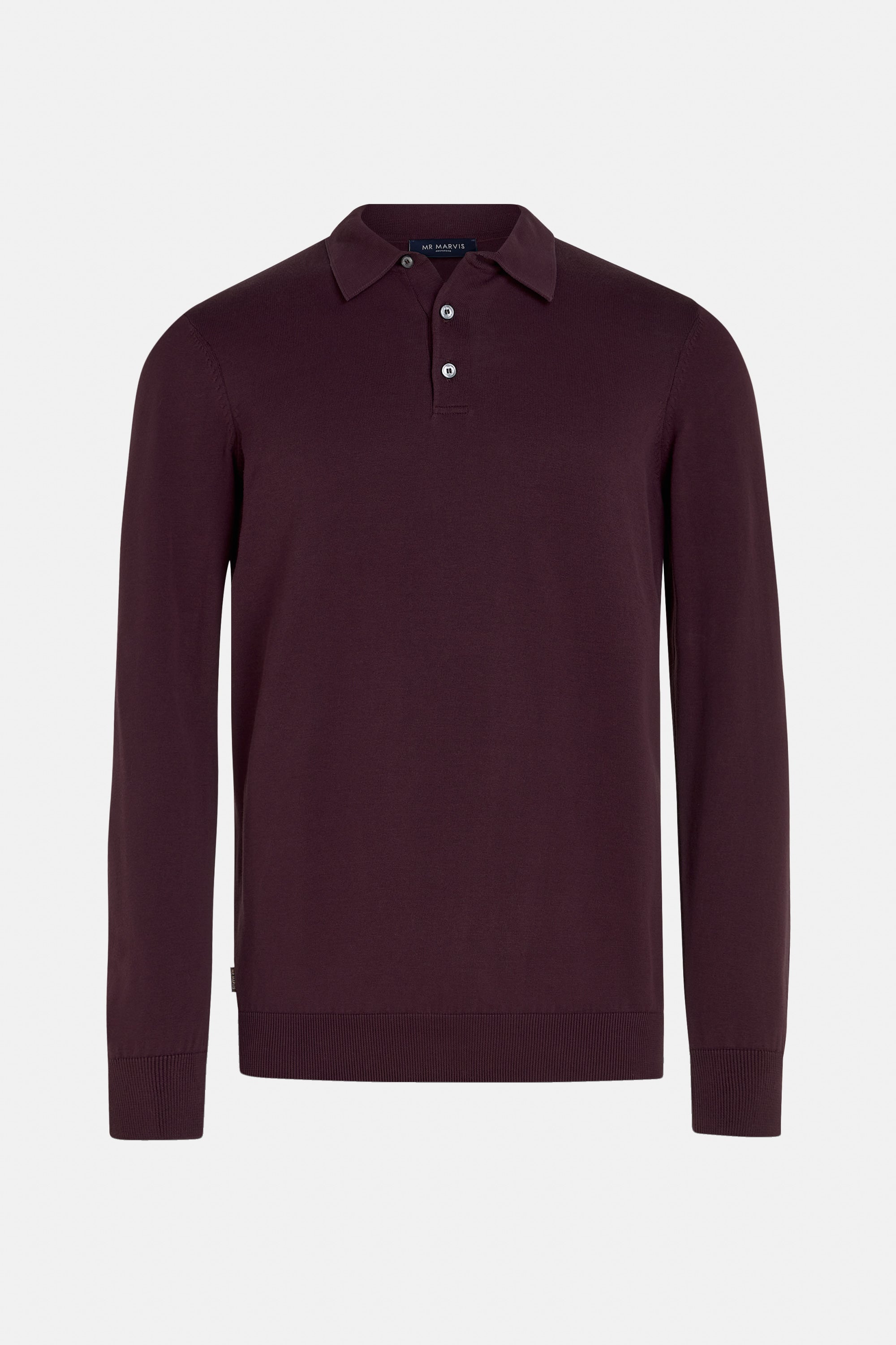 Découvrez Reserves : notre Pull à Col Polo bordeaux foncé en édition limitée. Le Pull à Col Polo adopte la même coupe et les même détails que notre célèbre polo en maille, les manches longues en plus. Il est ultra confortable et très élégant à la fois.